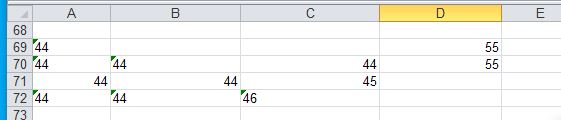 Let Ws12.Range("A69").Value = Split("44") ' ' Gives Number held as text thing