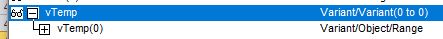 Set arrRng(1) = Evaluate("=A69") 'Watch : + : arrRng(1) : "44" : Range/Range : Sheet2.SetRangeValueWithSingleCellRangeFromEval