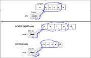 In documentation we distinguish three pointer types that can be stored in the LongPtr : An LPSTR string is defined as a pointer to a null-terminated ANSI character array. However, because the only way that we can tell when an LPSTR string ends is by the location of the terminating null, LPSTRs are not allowed to contain embedded null characters. Similarly, an LPWSTR is a pointer to a null-terminated Unicode character set with no embedded nulls. (The W in LPWSTR stands for Wide, which is Microsoft's way of saying Unicode.) )