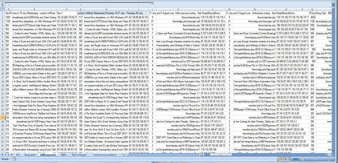 So every day I run at least once the big code in the Requests worksheet of IPAddressesWatchingExcelFox_Refresh.xls,