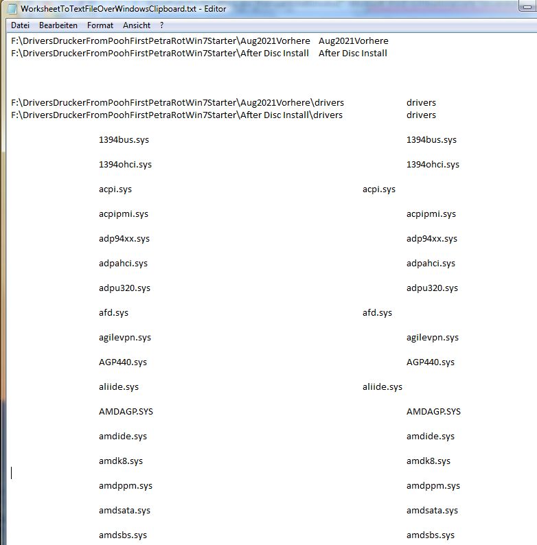 Here a paste from the text file producedCode:F:\DriversDruckerFromPoohFirstPetraRotWin7Starter\After Disc Install\DriverStore\FileRepository\hpscanminidrv_dj1050_j410.inf_x86_neutral_f8801e0bb3ab9eb4 hpscanminidrv_dj1050_j410.inf_x86_neutral_f8801e0bb3ab9eb4 HPScanMiniDrv_DJ1050_J410.INF hpscanminidrv_dj1050_j410.PNF HPScanMiniDrv_DJ1050_J410x32.CAT F:\DriversDruckerFromPoohFirstPetraRotWin7Starter\After Disc Install\DriverStore\FileRepository\hpscanminidrv_dj1050_j410.inf_x86_neutral_f8801e0bb3ab9eb4\drivers drivers F:\DriversDruckerFromPoohFirstPetraRotWin7Starter\After Disc Install\DriverStore\FileRepository\hpscanminidrv_dj1050_j410.inf_x86_neutral_f8801e0bb3ab9eb4\drivers\scanner F:\DriversDruckerFromPoohFirstPetraRotWin7Starter\After Disc Install\DriverStore\FileRepository\hpscanminidrv_dj1050_j410.inf_x86_neutral_f8801e0bb3ab9eb4\drivers\scanner\x32 F:\DriversDruckerFromPoohFirstPetraRotWin7Starter\After Disc Install\DriverStore\FileRepository\hpvpl04.inf_x86_neutral_4dd0ab13ea43b845 hpvpl04.inf_x86_neutral_4dd0ab13ea43b845 HPMACRONAMES.gpd hpvpl04.cat hpvpl04.inf hpvpl04.ini hpvpl04.PNF hp_deskjet_2050_04.gpd locale.gpd stdnames.gpd F:\DriversDruckerFromPoohFirstPetraRotWin7Starter\After Disc Install\DriverStore\FileRepository\hpvpl04.inf_x86_neutral_4dd0ab13ea43b845\i386 i386 hpfime50.dll hpinkcoi8911.dll hpinksts8911.dll hpinksts8911LM.dll hpvpldrv04.dll hpvplres04.dll hpvplui04.dll unidrv.dll unidrv.hlp unidrvui.dll unires.dll