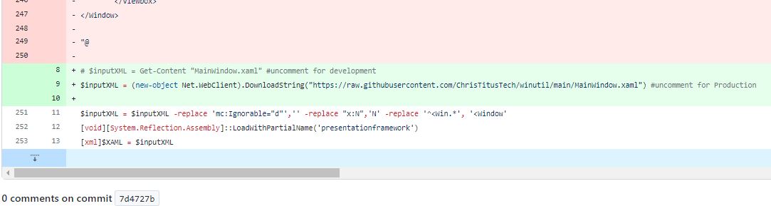 I am interested in what seems to be a change by Chris Titus to his recent “WPF” windows utility