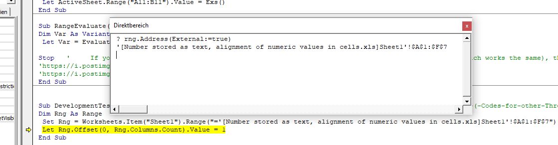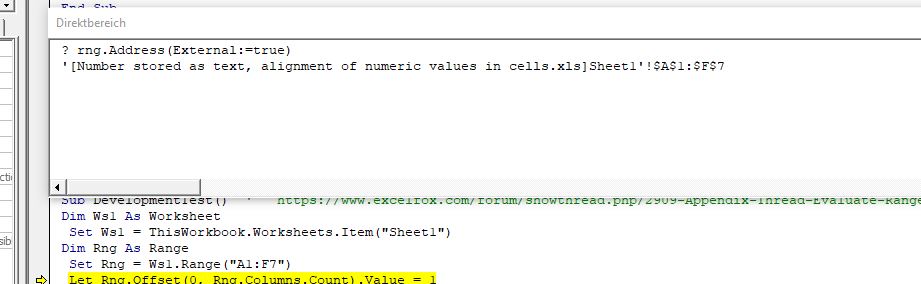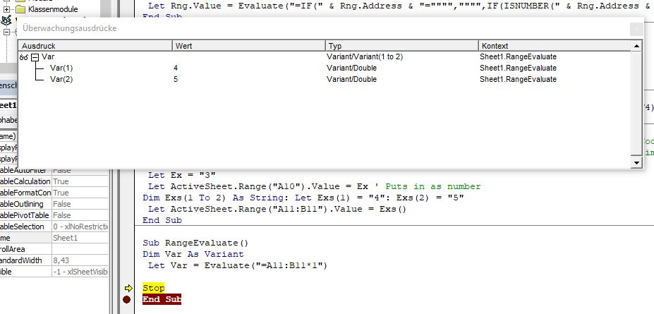 Let Ws.Range("A2") = Ws.Evaluate("=IF(1,A1)") ' Watch : + : Ws.Evaluate("=IF(1,A1)") : "44" : Variant/Object/Range : Tabelle6.RangeEvaluate