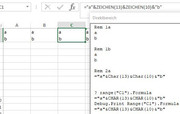 However, from experience I would only do this, if ever, at a final stage, since the careful explicit constructions are usually easier to build up and debug. Indeed, with hindsight, I might separate all the final cell texts of "a" and "b", as shown within the VBA construction, into the 3 characters of a quote, an a , and a final quote, just so as to make them clearly correspond to the explanations given of the quotes in VBA