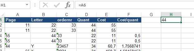 ' The more practical use..... It appeared that we got the 1* done on the 55, but not on the 44, which was also thought a possibility, so making the ISNUMBERless useful to recognise that 44 as a number. But we noted it went half way, it’s doing half the job, sort of. We further noted that this rather means that the simple = A6 is doing half the job, sort of. This half the job, that is to say the half not yet finished, is something going on in the spreadsheet. Maybe that tells us what is going to happen next