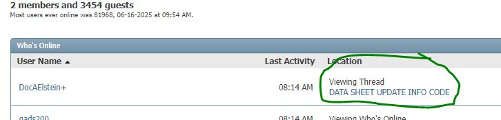 DocAElstein*	11:50 AM	/forum/online.php?order=asc&sort=username&pp=20&page=1Viewing Who's Online	80.136.200.74