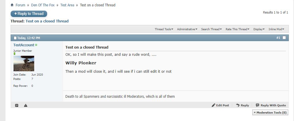 Hey Test Account, you naughty little boy, I am going to close the Thread