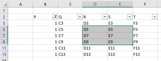 'Get the visible selected cells