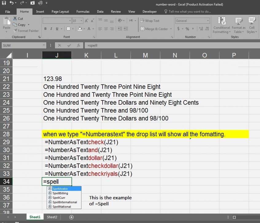 =NumberAsText(A1) ==> One Hundred Twenty Three Point Four Five